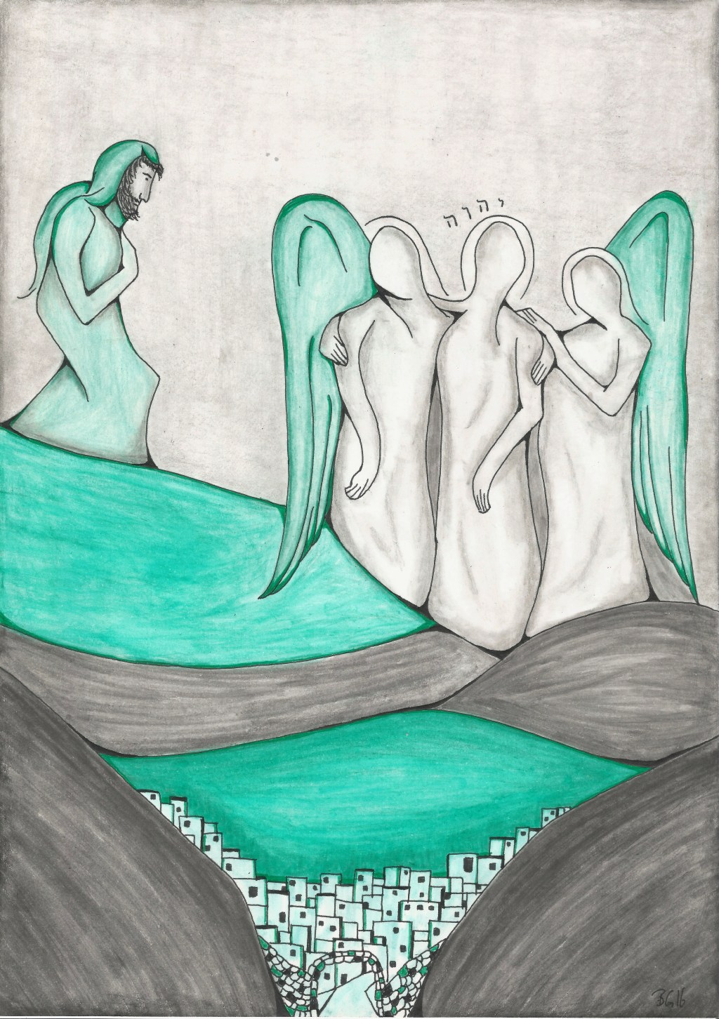 Abraham bewirtet als ein guter Gastgeber nicht nur seine Gäste, sondern er begleitet sie auch bis kurz vor ihr nächstes Ziel. Er gibt ihnen Geleit. Das heißt, er reist ein Stück mit ihnen und nimmt vielleicht sogar ein paar seiner Männer mit, bewaffnete Männer, die die Reisenden auf dem Weg beschützen. Abraham ist ein Herr und Fürst in seinem Zelt. Er erfüllt seine Pflicht. Und so stehen sie vor Sodom. Zwei der Männer gehen hinab in die Stadt (siehe1.Mo19,1). Einer bleibt. Der HERR bleibt. Und Abraham verhandelt mit diesem dritten Mann. Dem „Engel Gottes“… Eine geheimnisvolle Gestalt, in der Gott selbst anwesend ist und mit Abraham redet.
