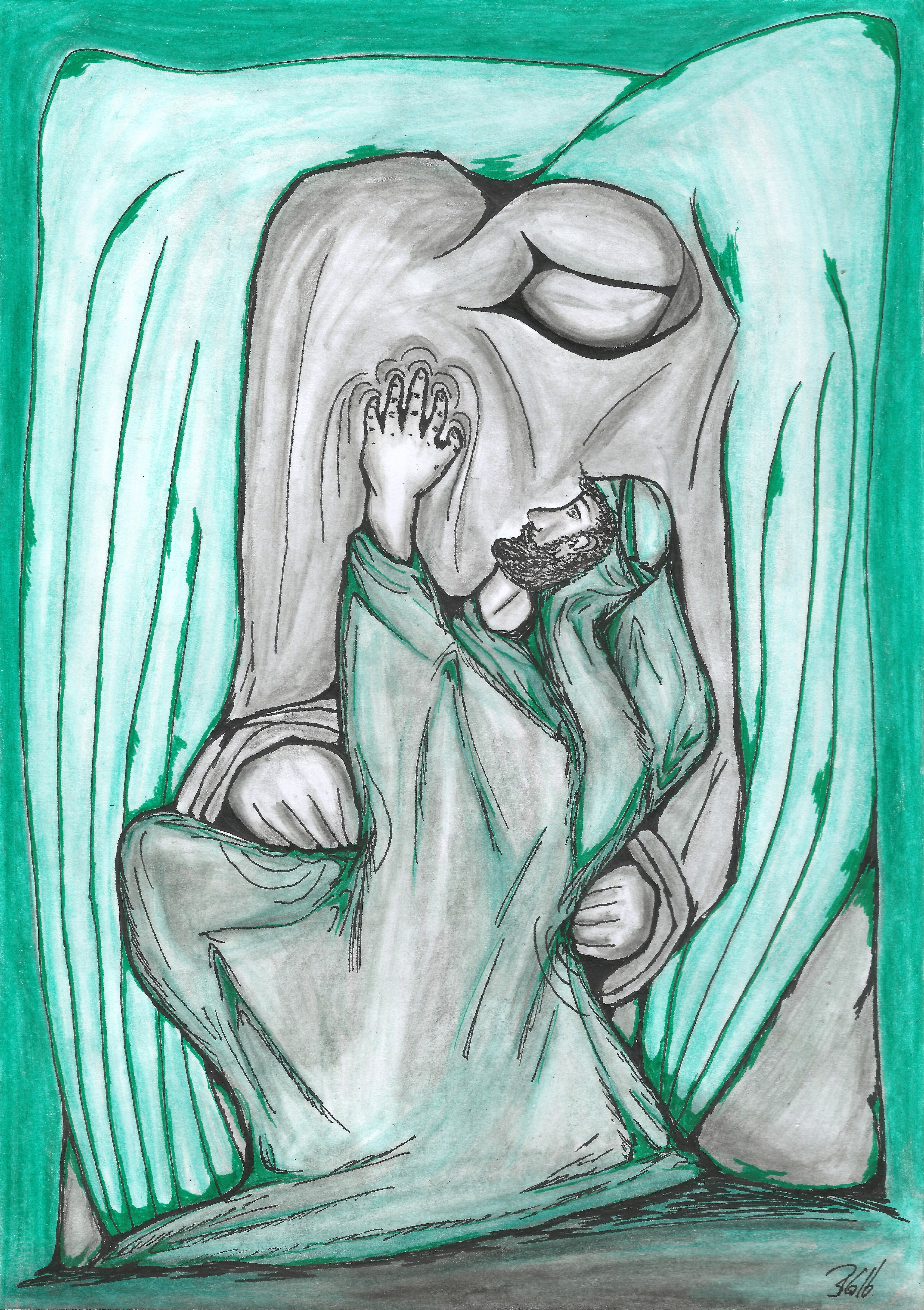 Als würde das alles nicht genügen, tritt ein Mann zu Jakob und fängt an, mit ihm zu ringen. Aus dem Nichts wird er angegriffen und kämpft die ganze Nacht. Der Mann wird nicht näher bezeichnet oder beschrieben, doch wir ahnen, dass es sich wie bei den drei Männern, die schon Abraham besuchten, wieder nur um einen Engel Gottes, einen Botschafter Gottes handeln kann. Warum nur schickt Gott jemanden aus, um mit Jakob zu rangeln? Das erscheint fast absurd und wir müssen es auch nicht völlig verstehen. Vielleicht ringt Jakob auch mit sich selbst oder mit dem Bösen? Wir wissen es nicht genau. Fest steht, dass es eine Art letzte Bewährungsprobe ist, ehe Jakob in das verheißene Land zurückkehrt.