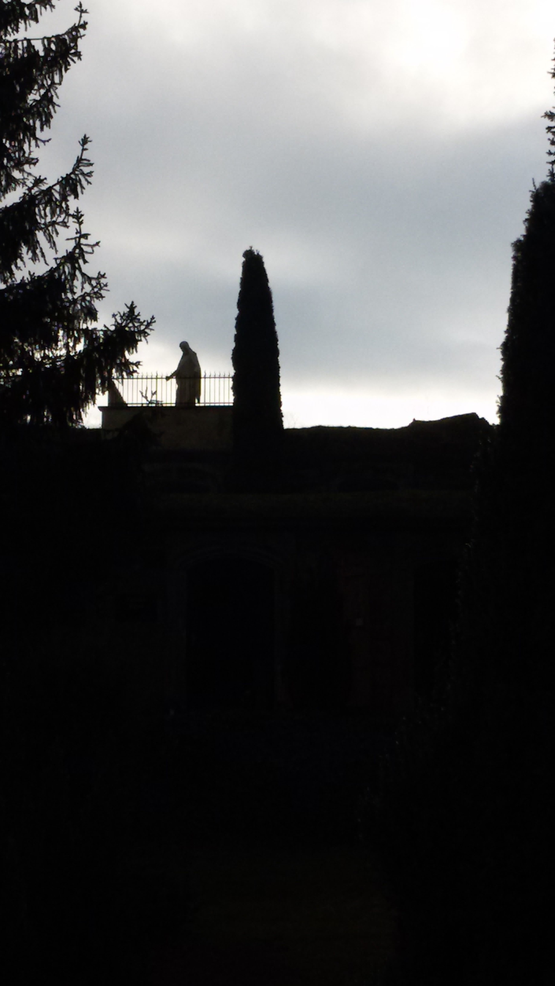 Bei näherer Betrachtung dessen, was ich da so in die Linse gebannt hatte, musste ich unwillkürlich lächeln. Eine Christusstatue im Gegenlicht, eingezäunt von schmiedeeisernen Gattern. Es sah aus, als würde dort oben jemand auf einer Dachterrasse oder einem Balkon stehen, eine Gestalt im Umhang, die ihre Arme ausbreitete und den Anblick der unter ihm liegenden Stadt genoss. „Jesus steht auf dem Balkon und schaut zu mir herunter.“, dachte ich. Im Grunde habe ich nicht viel übrig für kitschige Christusfiguren und hege keinerlei religiöse Gefühle bei ihrem Anblick. Ich kann die kunstvolle Arbeit im Stein bewundern, aber das Abbild hat für mich persönlich keine tiefere Bedeutung an sich.