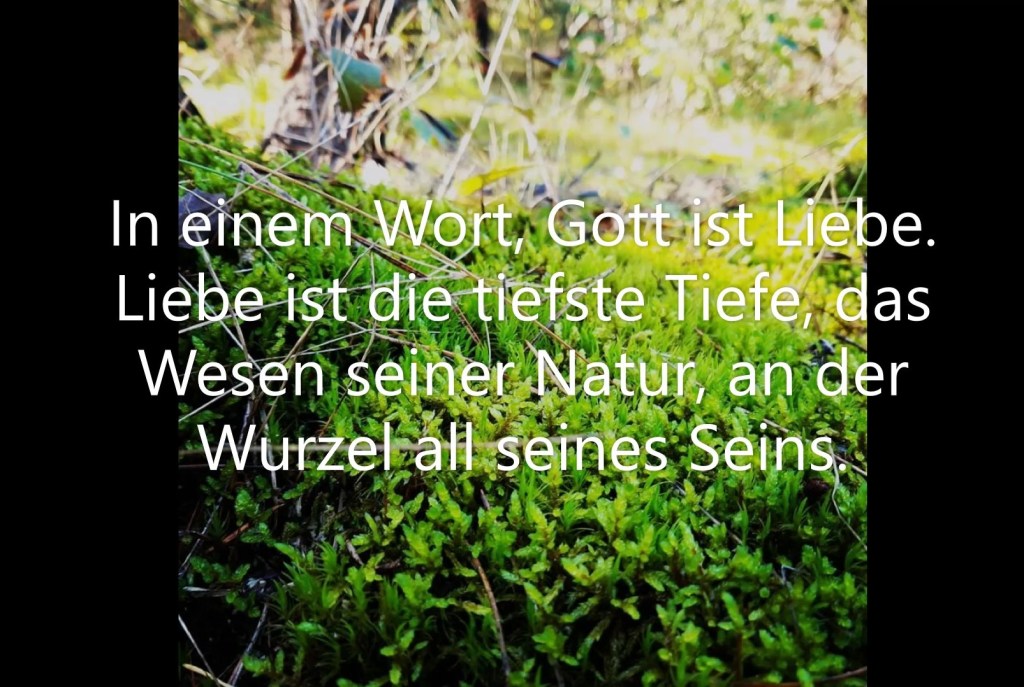 Es war, antworte ich, dieser Akt in ihm, der in ihm, als Dem Sohn, der Selbst-Existenz seines Vaters entsprach. Was nun ist das Tiefste in Gott? Seine Macht? Nein, denn Macht könnte ihn nicht zu dem machen, was wir meinen, wenn wir sagen Gott. Das Böse könnte selbstverständlich niemals ein kleinstes Teilchen erschaffen; doch lasst uns ganz klar verstehen, dass ein Wesen, dessen Essenz nur Macht wäre, solch eine Verneinung des Göttlichen wäre, dass ihm kein aufrichtiger Lobpreis dargebracht werden könnte: sein Dienst muss Furcht sein und nur Furcht allein. Solch ein Wesen, selbst wenn es gerecht im Urteilen wäre, könnte doch nicht Gott sein. Der Gott selbst, welchen wir lieben, könnte nicht gerecht sein, wäre er nicht immer noch etwas Tieferes und Besseres, als wir im Allgemeinen mit dem Wort meinen – doch, wehe, wie wenig kann Sprache sagen, ohne etwas scheinbar irgendetwas Falsches zu sagen! In einem Wort, Gott ist Liebe.[12] Liebe ist die tiefste Tiefe, die Essenz seiner Natur, an der Wurzel all seines Seins. Es ist nicht bloß, dass er nicht Gott sein könnte, wenn er keine Geschöpfe gemacht hätte, für welche er Gott ist; sondern Liebe ist Herz und Hand seiner Schöpfung; es ist sein Recht zu erschaffen und auch seine Macht zu erschaffen. Die Liebe, die Schöpfung vorsieht, ist selbst die Macht zur Schöpfung. Noch könnte er gerecht sein – das heißt fair zu seinen Geschöpfen – es sei denn, seine Liebe hätte sie erschaffen. Seine Vollkommenheit ist seine Liebe. All seine göttlichen Rechte ruhen auf seiner Liebe. Ah, er ist nicht der große Monarch! Der einfachste Bauer, der seine Kuh liebt, ist göttlicher als jeder Monarch, dessen Monarchie seine Herrlichkeit ist. Wenn Gott Sünde nicht strafen würde, oder wenn er es aus irgendeinem anderen Grund als Liebe täte, wäre er nicht der Vater Jesu Christi, der Gott, welcher wirkt wie Jesus wirkte. Was also, sage ich einmal mehr, entspricht in Christus der schöpferischen Macht Gottes? Es muss etwas sein, das ebenfalls aus Liebe kommt; und im Sohn muss die Liebe zu dem bereits Existierenden sein. Wegen dieser ewigen Liebe, welche keinen Anfang hat, muss Der Vater Den Sohn haben. Gott könnte nicht lieben, könnte nicht Liebe sein, ohne Dinge zum Lieben zu machen: Jesus hat Gott zum Lieben; die Liebe Des Sohnes antwortet auf die Liebe Des Vaters. Die Antwort auf selbst-existierende Liebe ist selbst-verleugnende Liebe. Die Verleugnung von sich selbst ist das in Jesus, welches der Schöpfung Gottes entspricht. Seine Liebe handelt, erschafft, in Selbst-Entsagung, im Tod des Selbst als Antrieb; im Ertränken des Selbst im Leben Gottes, wo es nur als Liebe lebt. Was ist Leben in einem Kind? Ist es nicht die vollkommene Antwort an seine Eltern? Völliges Einssein mit ihnen? Ein Kind in Auseinandersetzung mit seinen Eltern, eines in welchem ihr Wille nicht der seine ist, ist kein Kind; als ein Kind ist es tot, und sein Tod ist offenbar in Unnachgiebigkeit und Entstellung. Seine spirituelle Ordnung ist auf dem Wege ins Chaos. Der Zerfall hat begonnen. Der Tod ist am Wirken in ihm. Schaut dasselbe Kind sich dem Willen ergebend, der zu Recht über seinem eigenen ist; schaut wie das Leben beginnt vom Herzen in die Glieder zu fließen; schaut die entspannten Glieder; schaut das Licht wie einen Quell in seinen Augen aufsteigen und von seinem Gesicht ausstrahlen! Das Leben hat wieder seine Herrschaft![13]