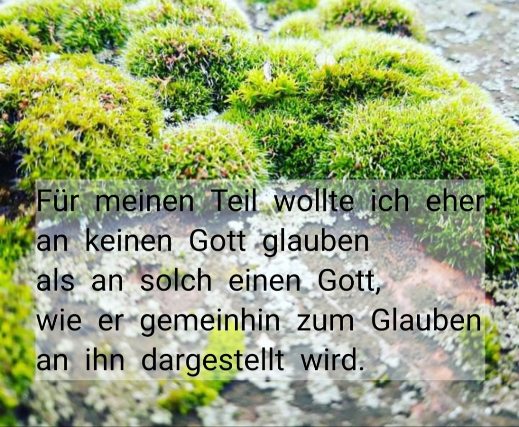 Wenn der Herr erscheinen würde, könnten die Vielen, welche den gewöhnlichen Anblick eines Dinges oder einer Person für das Ding oder die Person selbst nehmen, niemals die neue Schau als die Gestalt des Alten wahrnehmen: Der Meister ist derart falsch dargestellt worden von solchen wie beanspruchten, ihn darzustellen, und besonders in der einen ewigen Tatsache der Tatsachen – das Verhältnis zwischen ihm und seinem Vater –, dass es unmöglich ist, dass sie irgendeine Ähnlichkeit sehen sollten. Für meinen Teil wollte ich eher an keinen Gott glauben als an solch einen Gott, wie er gemeinhin dargestellt wird, dass man an ihn glaube. Wie weit jene zu verurteilen sind, welche, gerechterweise davon abgestoßen, die Idee von sich werfen, keine Nachforschungen anstellen, ob etwas darin wahr sein mag, obwohl das meiste falsch sein muss, noch ihr irgendeinen Anspruch auf Überprüfung zugestehen um der Möglichkeit willen, dass einige, die sich selbst seine Propheten nennen, geistliche Bestechung angenommen haben mögen