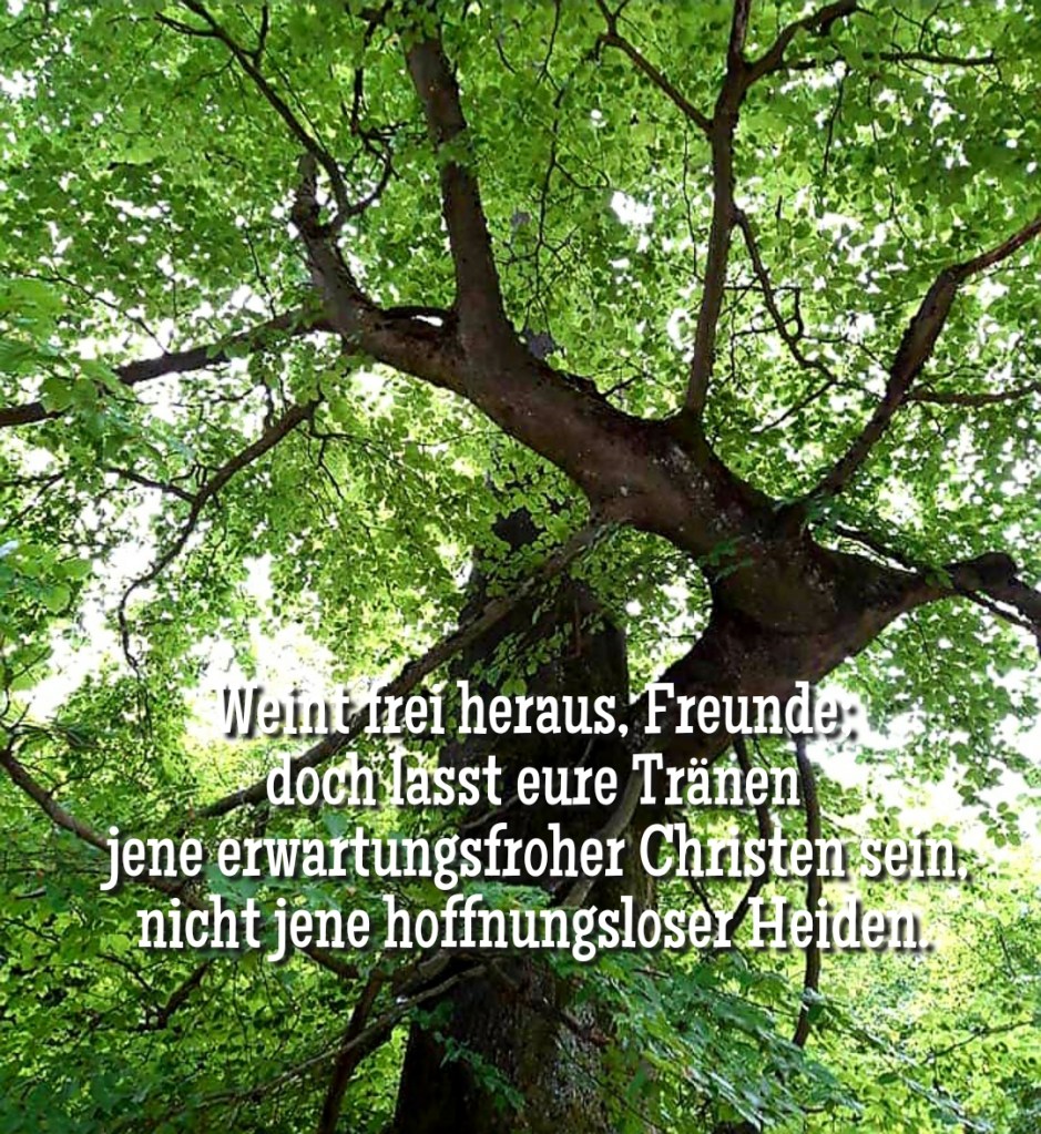 „Ich bin die Auferstehung und das Leben. Wer an mich glaubt, der wird leben, ob er gleich stürbe; und wer da lebet und glaubet an mich, der wird nimmermehr sterben.“[22]